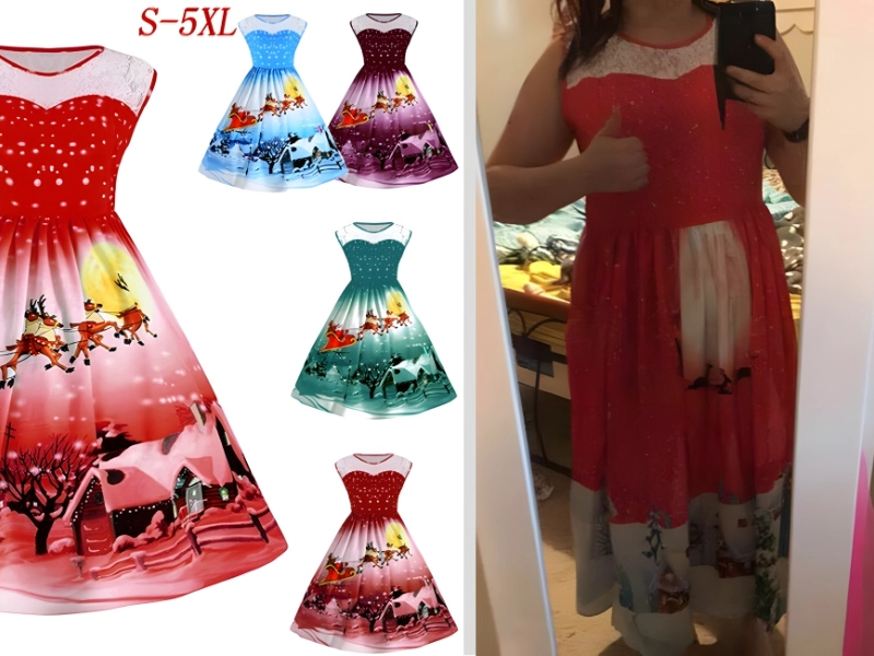 Originalpreis des Kleides: 13 $ Design von: Wish Fälschung erworben bei: unbekannt Preis der Fälschung: unbekannt Seien wir ehrlich: Wish ist eine tägliche Quelle unerschöpflicher Unterhaltung, voller erstaunlicher und ungewöhnlicher Produkte. Doch jeder Wish-Kunde weiß, dass man die Produktbilder stets mit einer großen Portion Skepsis betrachten sollte. Bedauerlicherweise hat diese Kundin diesen Hinweis ignoriert, als sie dieses 13-Dollar-Weihnachtskleid kaufte.