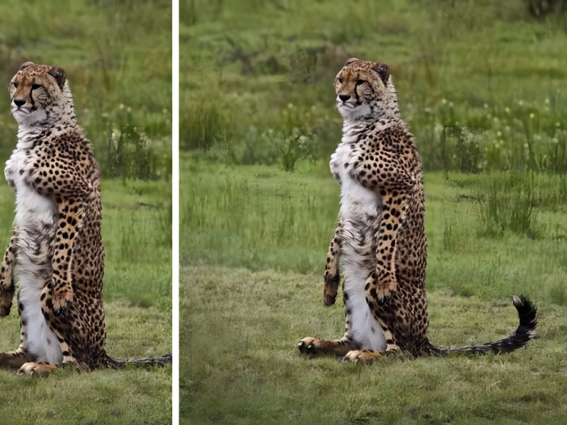 Qu'ils soient sauvages ou domestiques, les félins partagent tous le même esprit curieux et attentif. Regardez simplement ces pattes impressionnantes et puissantes ! Les guépards sont irrésistiblement charmants, particulièrement lorsqu'ils adoptent une pose comme celle d'un père vigilant scrutant par la fenêtre pour surveiller son territoire.