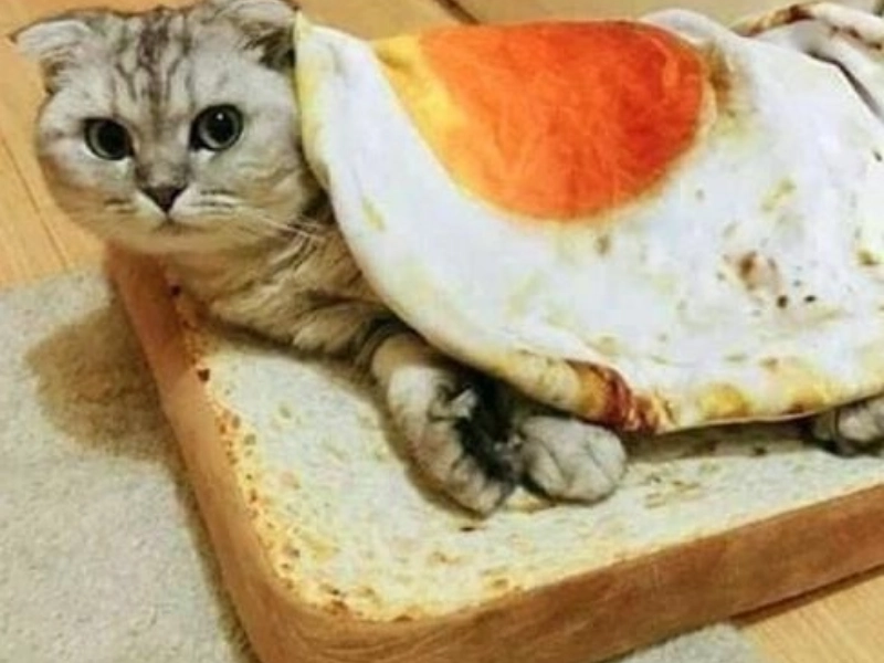 Baignée dans la lumière dorée et chaleureuse du soleil d'après-midi, Moustaches la chatte se prélassait confortablement dans la cuisine sur un coussin moelleux en forme de tranche de pain appétissante. Le coussin épousait parfaitement sa forme féline, la faisant ressembler à une miche de pain vivante et adorable. Ses humains amusés trouvaient un plaisir infini et constant dans sa pose ressemblant à du pain, riant joyeusement à cette vue attendrissante et comique. Moustaches ronronnait avec contentement et satisfaction, perdue complètement dans la chaleur réconfortante et le confort absolu. Alors que la lumière du soleil dansait gracieusement autour d'elle, elle régnait majestueusement comme la reine incontestée de son trône en forme de pain, un symbole parfait de confort douillet et des joies simples et authentiques de la vie quotidienne.