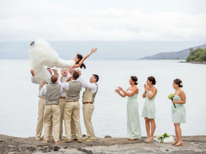 On dirait presque que lancer les mariées près des falaises fait partie de la célébration. Cette photo audacieuse capture un moment de plaisir sauvage, laissant les spectateurs à la fois choqués et divertis. Le courage et l'esprit d'aventure des participants rendent ce cliché absolument mémorable et spectaculaire.