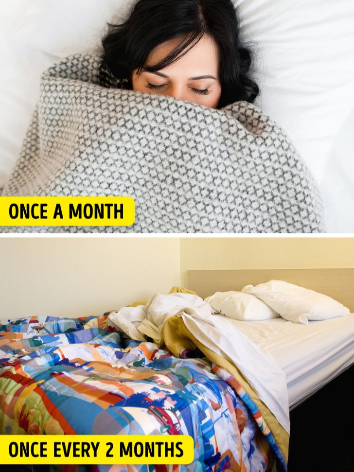 Les couvre-lits, puisqu'ils ne touchent pas la peau aussi souvent que les draps ordinaires, n'ont besoin d'être lavés qu'environ une fois tous les deux mois. Cela les aide à rester frais et propres sans usure inutile du tissu.