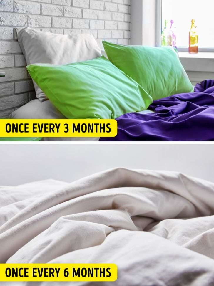 Les oreillers peuvent accumuler des huiles corporelles, des cheveux et de la saleté, en faisant un terrain propice à la prolifération de champignons et d'acariens microscopiques. Nettoyez les oreillers tous les trois mois systématiquement, surtout si vous utilisez des housses de protection, qui devraient être lavées au moins mensuellement pour une hygiène optimale.