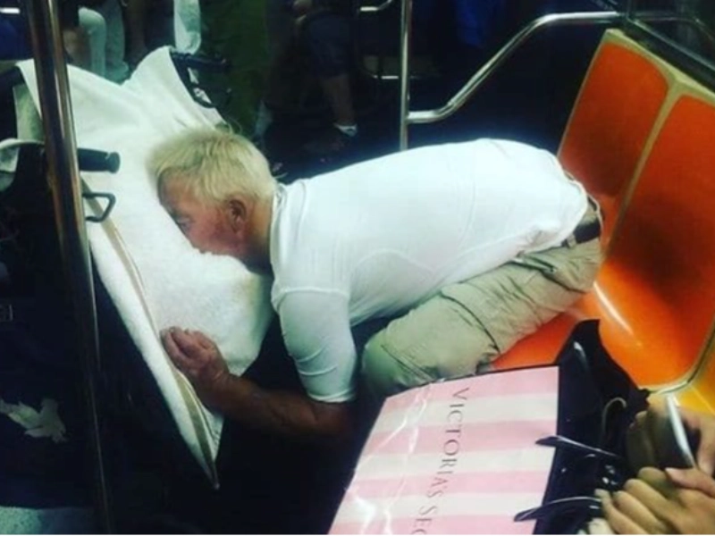 Pour certains voyageurs fatigués, le métro est l'endroit parfait pour rattraper un sommeil bien mérité et nécessaire. Ce voyageur ingénieux a transformé son siège en un lit de fortune confortable, avec une couverture douillette et une posture détendue. Leur capacité à trouver du confort au milieu du chaos ambiant témoigne de l'adaptabilité remarquable et de l'ingéniosité des habitants de la ville moderne.