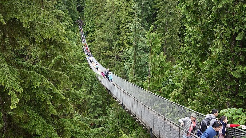 Très haut au-dessus de la rivière Capilano en Colombie-Britannique, ce pont suspendu est à la fois une attraction touristique majeure et une source d'appréhension légitime. Le pont oscille à chaque pas effectué, et sa réputation concernant les défis qu'il présente est bien méritée, car des incidents malheureux se sont produits ici par le passé. Malgré les précautions nécessaires, les visiteurs affluent pour vivre cette expérience palpitante et admirer le paysage forestier luxuriant environnant.