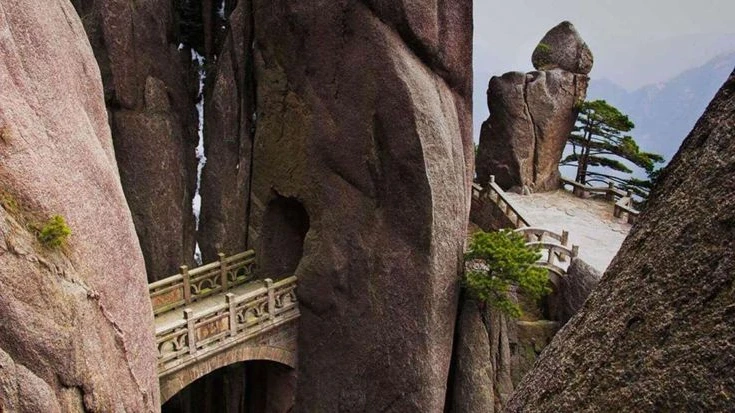 Le pont des Immortels, également connu sous le nom de pont du pays des fées, est une arche de pierre à couper le souffle qui relie deux sommets dans les montagnes mystiques de Huangshan en Chine. Enveloppé de brume et de légendes ancestrales, ce pont offre une traversée qui semble presque surnaturelle, invitant les voyageurs à pénétrer dans un paysage de mythes anciens et de merveilles naturelles extraordinaires.