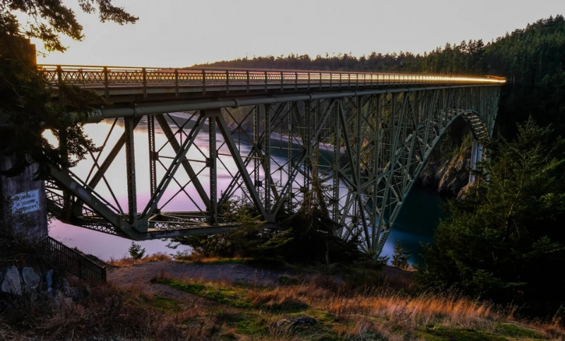 Enveloppé de brume et de mystère, le pont de Deception Pass relie l'île Whidbey et l'île Fidalgo dans l'État de Washington. Souvent enveloppé d'un épais brouillard, le pont peut rendre la visibilité presque nulle, ne permettant de voir que quelques mètres devant soi. Les eaux tourbillonnantes en contrebas et la chute abrupte ajoutent au sentiment de suspense palpable, transformant chaque traversée en une véritable aventure vers l'inconnu.