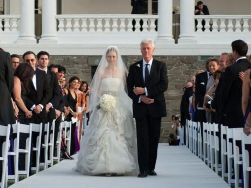 Chelsea Clinton a fait sensation en portant deux robes de mariée Vera Wang distinctes. La première présentait de la dentelle classique et traditionnelle, tandis que la seconde offrait une touche moderne avec des détails complexes et contemporains. Les deux créations reflétaient parfaitement son assurance naturelle et son amour profond pour l'élégance intemporelle et raffinée.