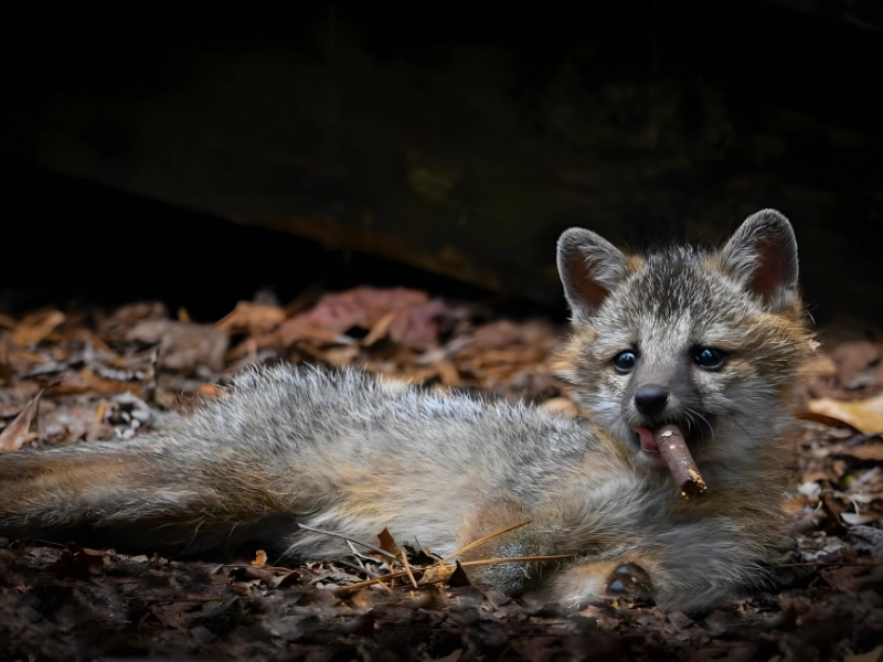 Cette photographie amusante et divertissante de la collection Comedy Wildlife 2023 montre un jeune renardeau semblant fumer un cigare artisanal tout en se prélassant confortablement.