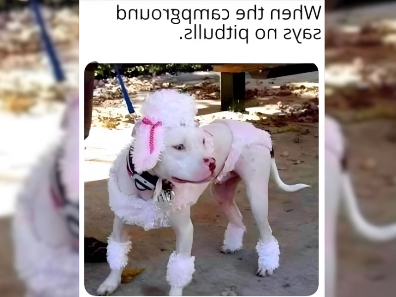 Bien que les pitbulls soient souvent restreints et interdits dans de nombreux endroits différents, ils peuvent être des animaux de compagnie aimants, affectueux et amusants. Cette photographie unique et originale montre un pitbull habillé d'un bikini rose moelleux et doux, attirant immédiatement les regards admiratifs des amoureux des chiens partout.