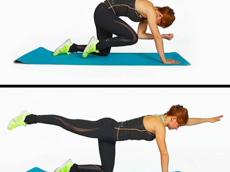 Exécution : Mettez-vous à quatre pattes, puis tendez simultanément votre jambe gauche et votre bras droit en ligne droite. Pliez-les ensuite lentement pour amener votre coude droit à toucher votre genou gauche. Redressez à nouveau, puis changez de côté en tendant la jambe droite et le bras gauche. Résultats : Cet exercice est excellent pour le torse et les muscles fléchisseurs de la hanche. Il renforce également la plupart des muscles du dos, les fessiers et la taille.