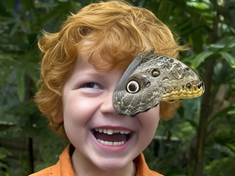 Appareil photo potentiel : Nikon D7100 Où acheter : Walmart Prix moyen : 1 400 $* Cette mignonne photo montre l'instant exact où un papillon chouette, du genre Caligo, se pose sur le visage d'un jeune garçon. Étant donné que les appareils Nikon sont parmi les meilleurs pour photographier la nature, il est possible que cette image ait été prise avec l'un de ces appareils.
