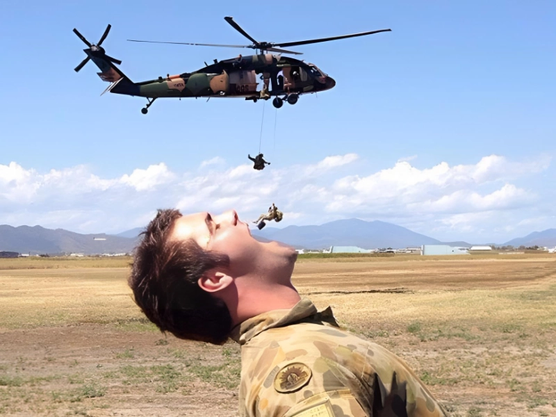 Utilisation potentielle de l'appareil photo du Samsung Galaxy Note 3 Informations d'achat : ElectronicsForce.com Prix moyen : 163 $* Cette image, prise dans un centre d'entraînement militaire, a une perspective déformée. La photo, prise il y a environ dix ans, montre un soldat qui rit en faisant semblant de dévorer ses camarades alors qu'ils sont largués d'un hélicoptère. Cette photo montre que l'armée américaine n'est pas toujours si sérieuse.