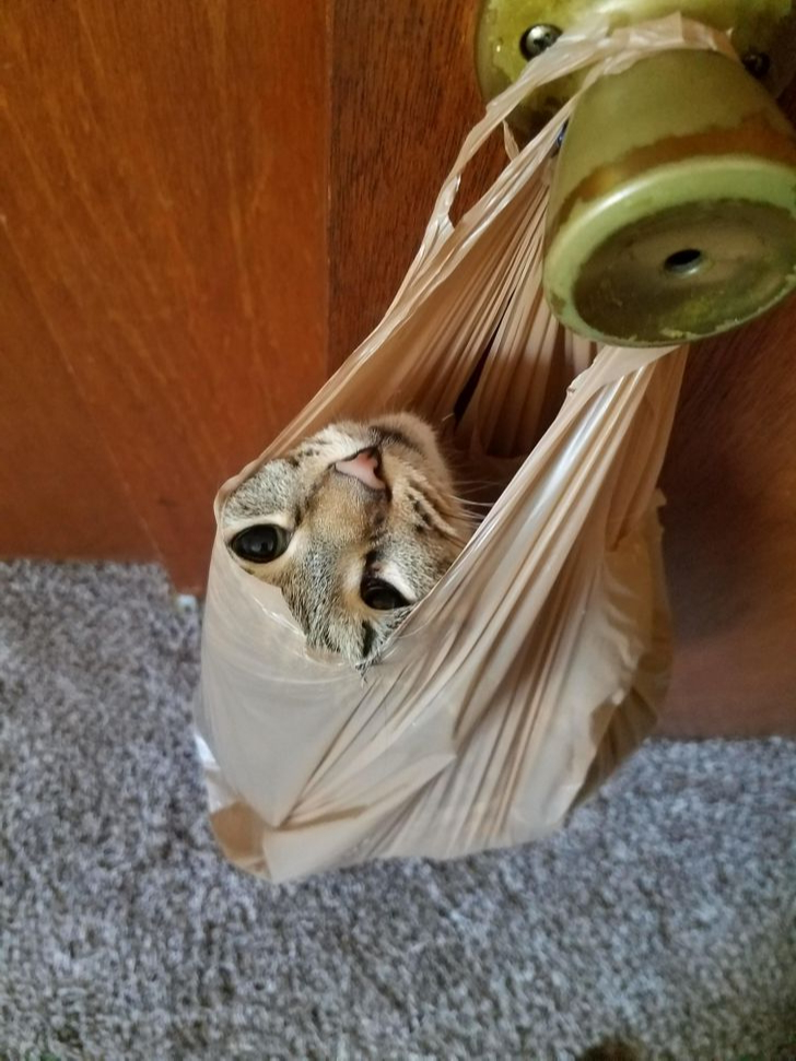 8. Le chat qui adore dormir dans les sacs de courses