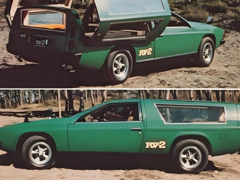 Année de fabrication : 1974 Prix estimé : Non spécifié En 1974, l'engouement pour les camping-cars était à son comble, porté par l'esprit libre des hippies. Le Toyota RV-2, malgré ses seulement deux portes, affichait l'audacieuse prétention de pouvoir accueillir six personnes. Lorsque l'arrière du véhicule s'ouvrait, il dévoilait une tente qui, sur les photographies d'époque, paraissait plutôt sombre et étriquée.