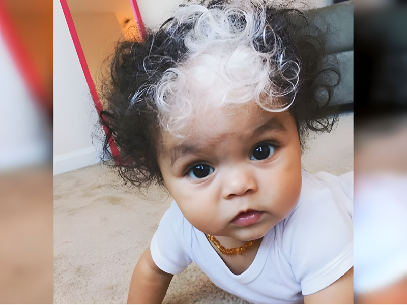 Le nouveau-né a hérité de cette mèche de cheveux blancs de sa mère.