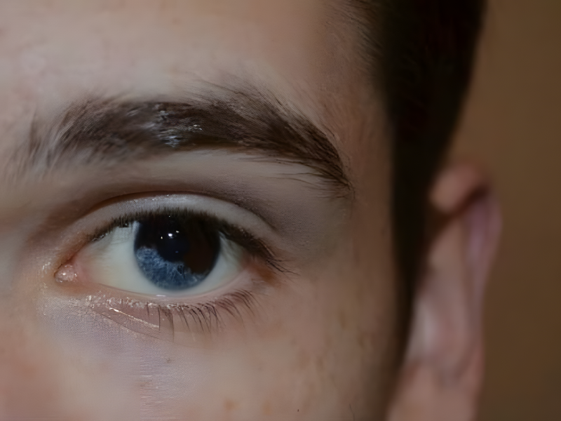 Un homme présentant une hétérochromie sectorielle, où deux couleurs coexistent dans un même iris.
