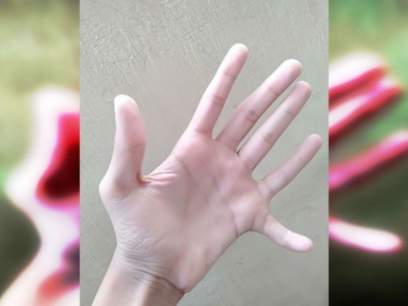 Une main présentant deux petits doigts, une duplication digitale.