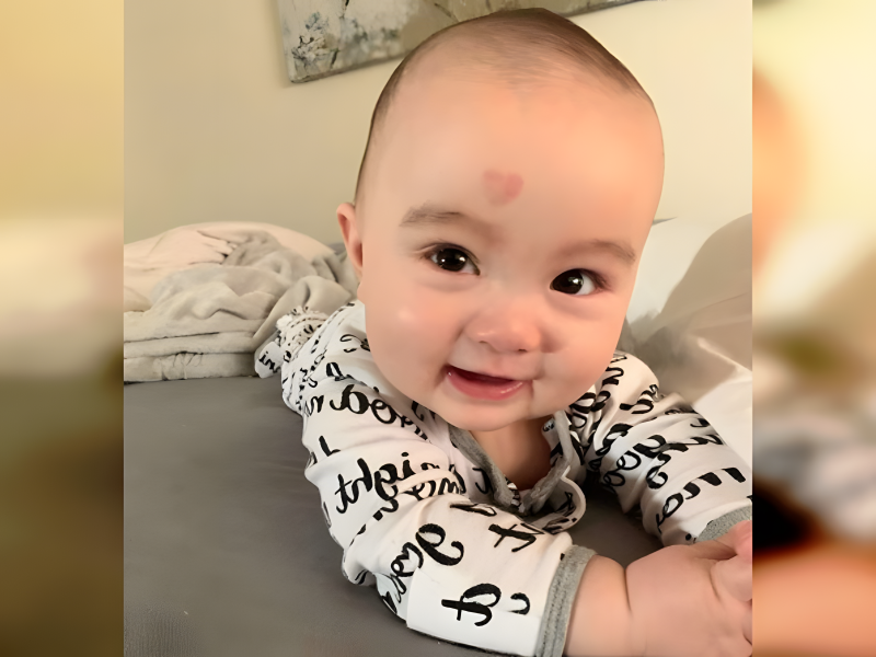 Un enfant avec une tache de naissance parfaitement formée en cœur.